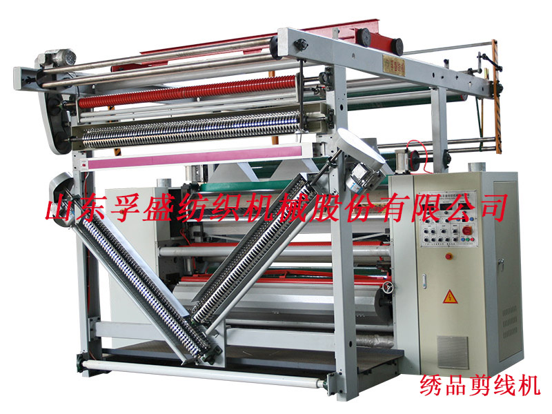 繡品剪毛機(jī)的鉤線裝置:包括剪毛機(jī)機(jī)架,機(jī)架的上部設(shè)有水平鉤線輥,水平鉤線輥上安裝有若干個(gè)鉤刀,水平鉤線輥的下方設(shè)有兩根